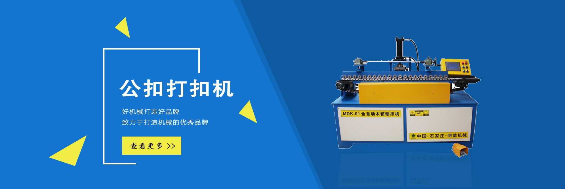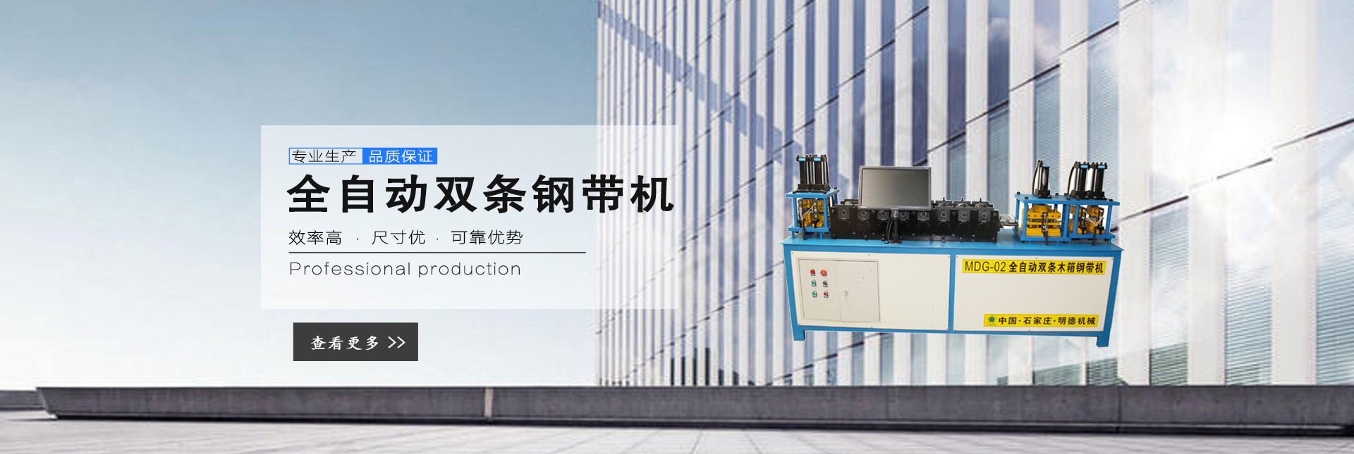 石家莊明德包裝機械有限公司,是國內(nèi)專業(yè)生產(chǎn)木箱雙條鋼帶機、美式托盤打釘機械、托盤刨槽機、倒角機、木包裝箱、木托盤的生產(chǎn)廠家,目前擁有廠房3000多平方米,自動化生產(chǎn)設(shè)備數(shù)十套。 公司下轄包裝機械事業(yè)部,主要生產(chǎn)新型全自動木箱鋼帶機、全自動(半自動)木箱鎖扣機、折疊鋼帶箱機械、鋼帶箱壓板機、美式托盤自動打釘機、托盤刨槽機、倒角機等相關(guān)鋼帶木箱機械、木工機械、配套產(chǎn)品,設(shè)備主體部分由高品質(zhì)機械和高精度模具組成,液壓系統(tǒng)、伺服系統(tǒng)和低壓配電單元的主要元器件,均選用西門子、施耐德等國際和國內(nèi)產(chǎn)品,大大提升了產(chǎn)品質(zhì)量,設(shè)備長時間運行穩(wěn)定可靠,獲得了用戶的一致好評。 公司下轄包裝制品事業(yè)部,主要生產(chǎn)各種實木木箱、膠合板鋼帶木箱和實木熏蒸托盤、歐標托盤、美標托盤、亞標托盤及相關(guān)配套產(chǎn)品,木箱和托盤均選用優(yōu)質(zhì)九厘板材和俄羅斯原木作為原材料,從生產(chǎn)制造、成品組裝、出廠質(zhì)檢到送貨上門,售后服務(wù)等,做到一條龍服務(wù),始終堅持“把質(zhì)量做到更好,把成本降到更低,把實惠讓給客戶“的經(jīng)營原則。